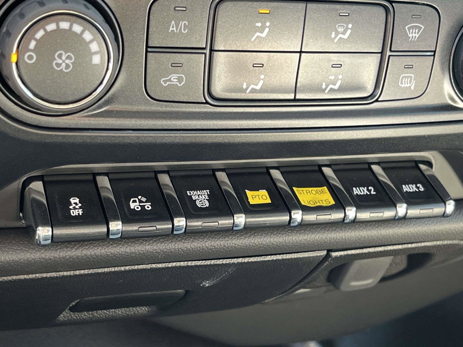 - Provision for cab roof-mounted lamp/beacon provides an overhead console mounted switch and electrical wiring tucked beneath the headliner for a body upfitter to connect a body-mounted warning or emergency lamp