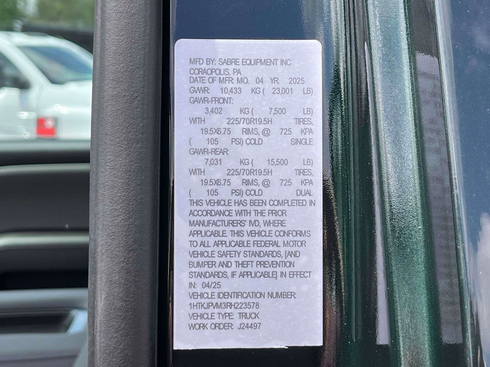- Tires, rear 225/70R19.5H traction blackwall Continental Max Axle Load: 16,000 lb.